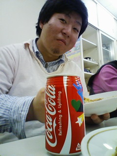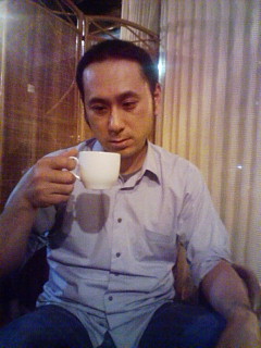 写真は、食後のコーヒーをおいしそうに味わうひらかわさんです。